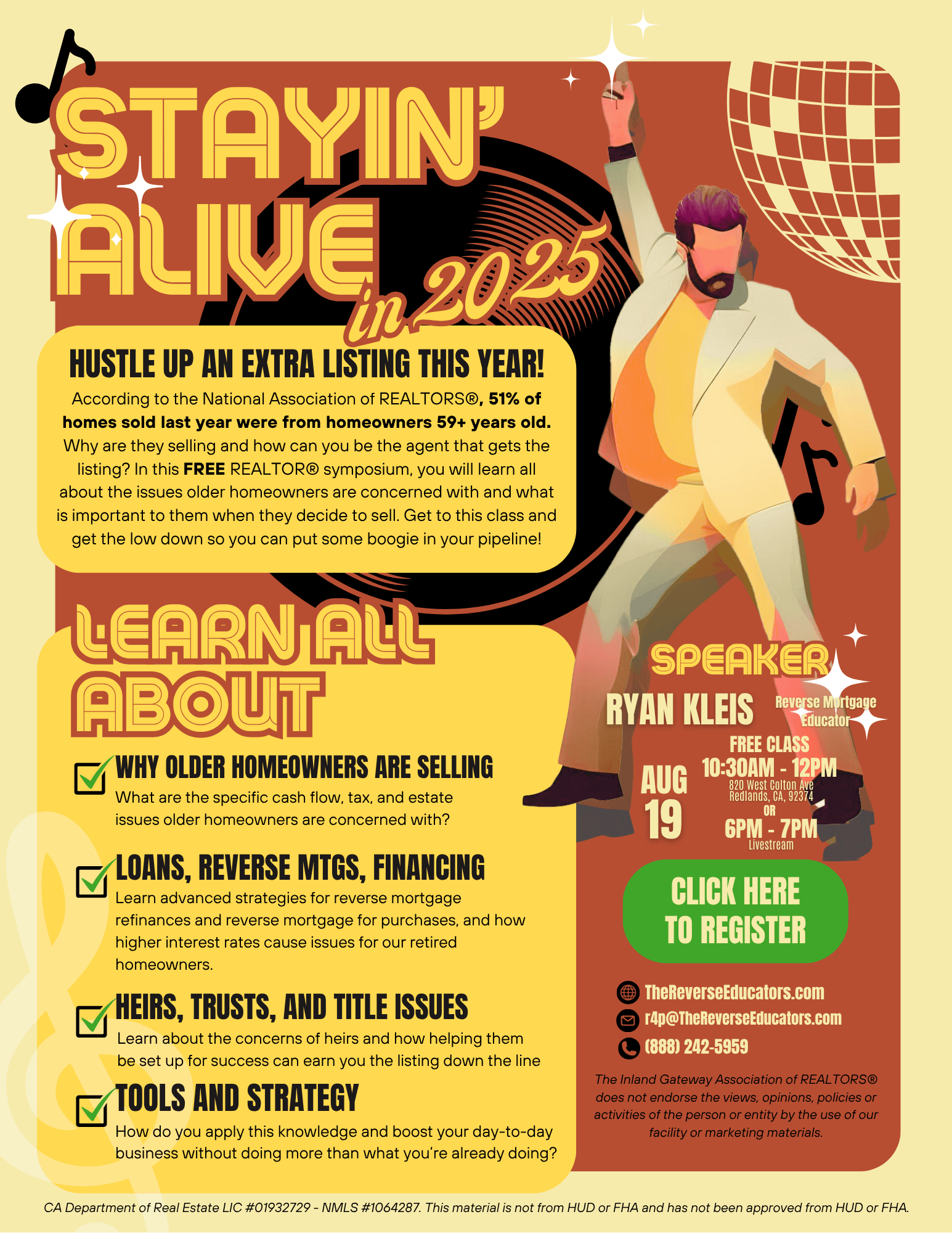 Stayin' Alive in 2025! According to NAR®, 51% of homes sold last year were from homeowners 59+ years old. Why are they selling and how can you be the agent that gets the listing?