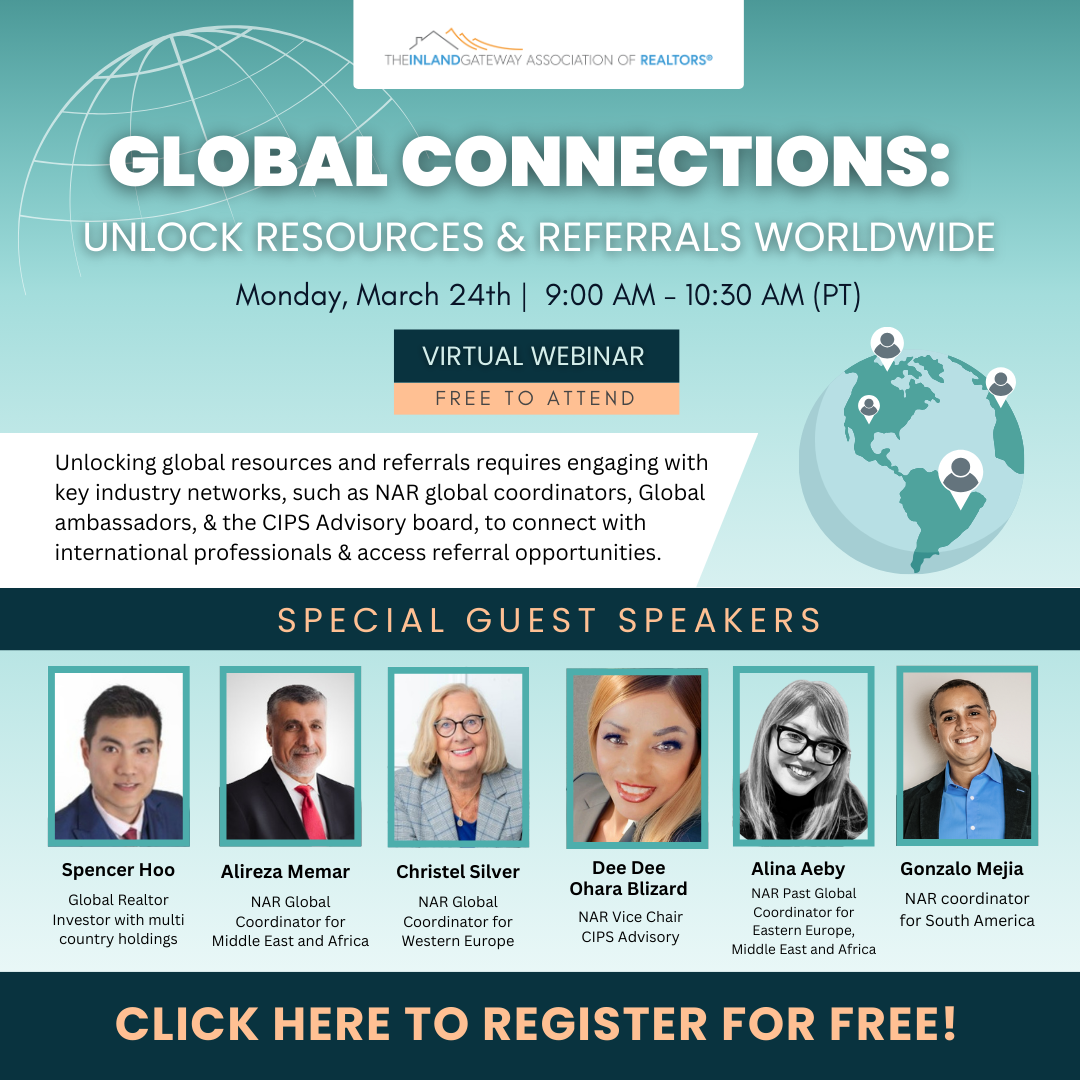 Unlocking global resources and referrals starts with tapping into key industry networks such as NAR global coordinators, Global ambassadors, and the CIPS Advisory board which are essential resources for connecting with international professionals and accessing referral opportunities. They provide market insights, networking platforms, and educational tools to help build credibility and expand your reach by establishing strong cross-border partnerships.