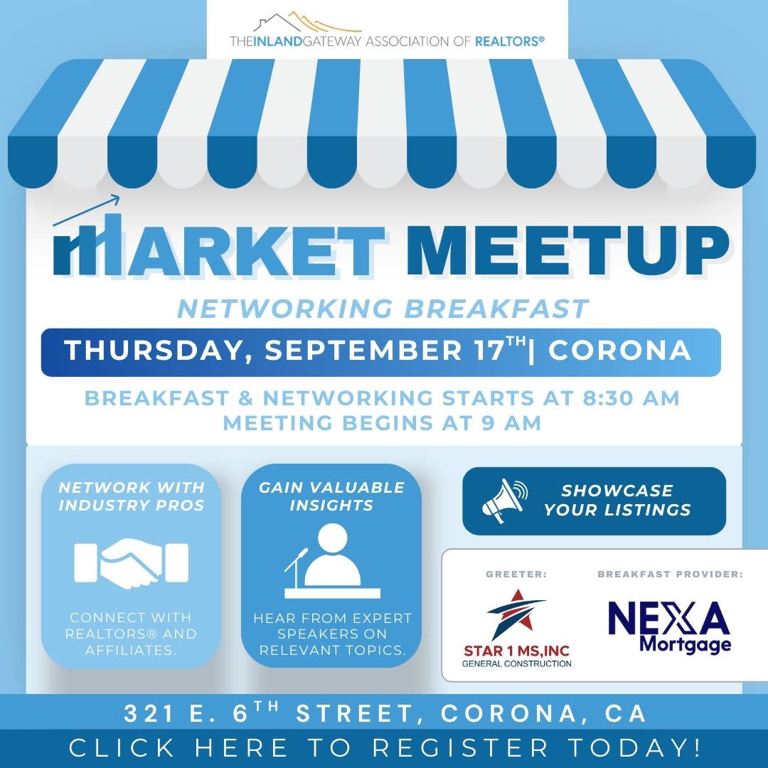 Fuel your morning with knowledge and connections at TIGAR’s Market Meetup Breakfast Meeting! Join us on the 3rd Thursday of every other month at TIGAR Corona (321 E. Sixth Street, Corona, CA 92879) for an engaging and informative session focused on the real estate industry. Doors open at 8:30 AM, giving you time to grab a delicious breakfast provided by one of our affiliates before the meeting begins at 9:00 AM.
