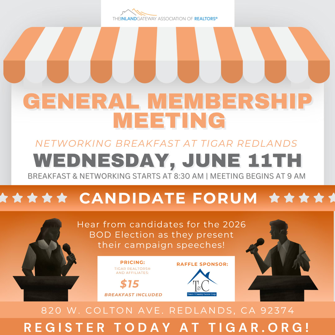 Choose to attend in person at TIGAR Redlands (820 W. Colton Avenue, Redlands, CA 92374) for just $15 for REALTORS® and Affiliates, or join us via Zoom at no cost. Advance registration is required, and attendance is limited to active TIGAR REALTOR® and Affiliate members.