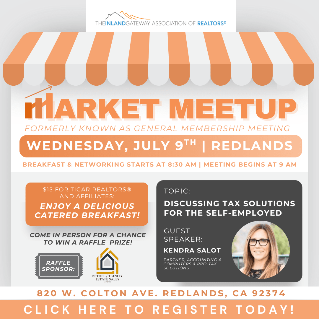 Join us for this month’s Market Meetup in Redlands, where we’ll dive into Tax Solutions for the Self-Employed—a crucial topic for REALTORS®, independent contractors, and entrepreneurs alike.