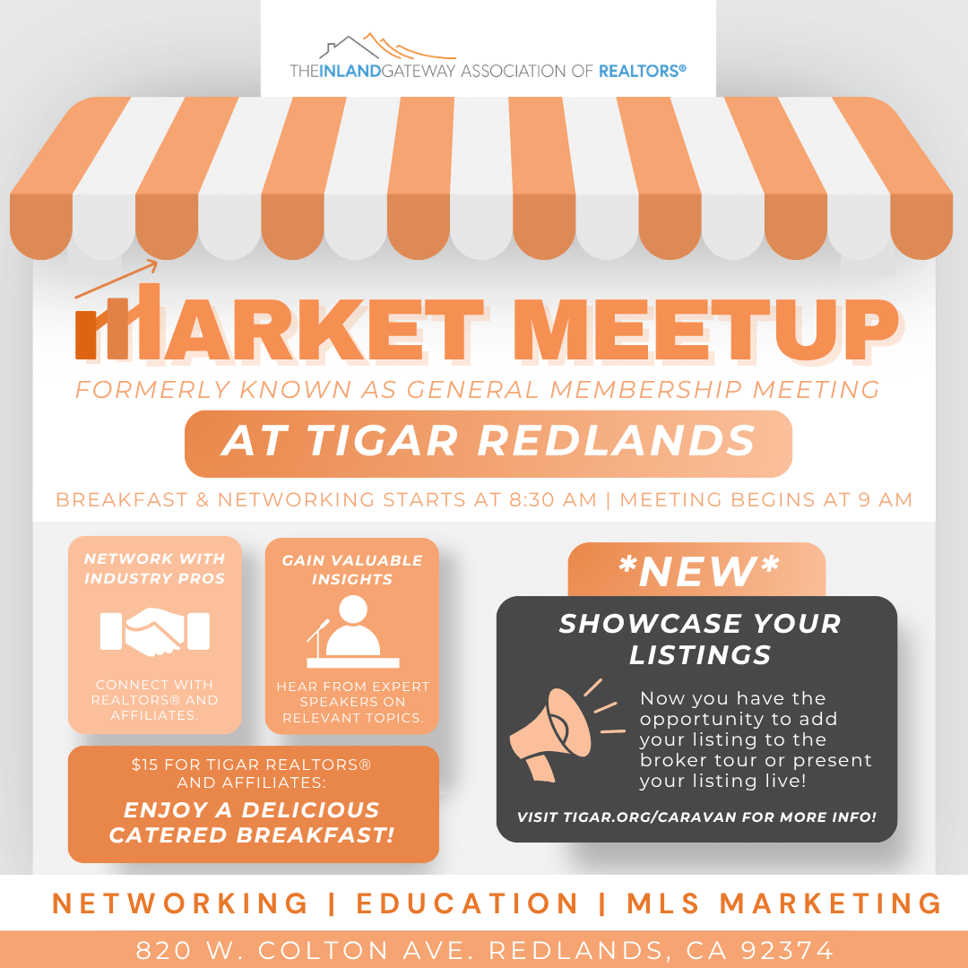 Choose to attend in person at TIGAR Redlands (820 W. Colton Avenue, Redlands, CA 92374) for just $15 for REALTORS® and Affiliates, or join us via Zoom at no cost. Advance registration is required, and attendance is limited to active TIGAR REALTOR® and Affiliate members.
