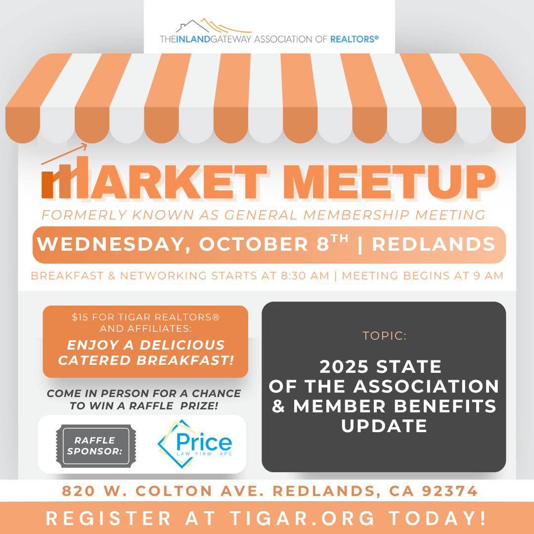 Attend in person at TIGAR Redlands (820 W. Colton Avenue, Redlands, CA 92374) for just $15 for REALTORS® and Affiliates. Advance registration is required, and attendance is limited to active TIGAR REALTOR® and Affiliate members.