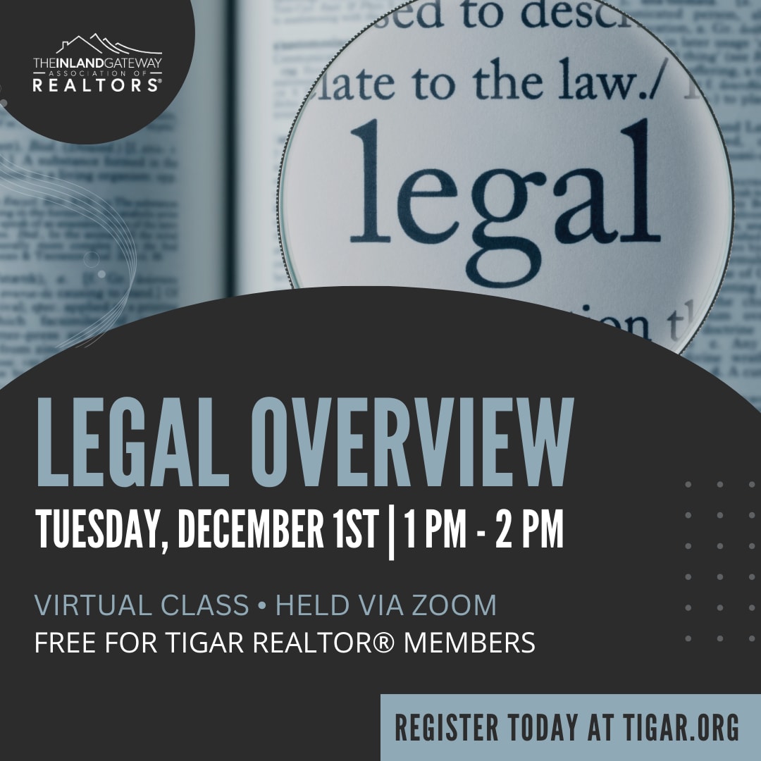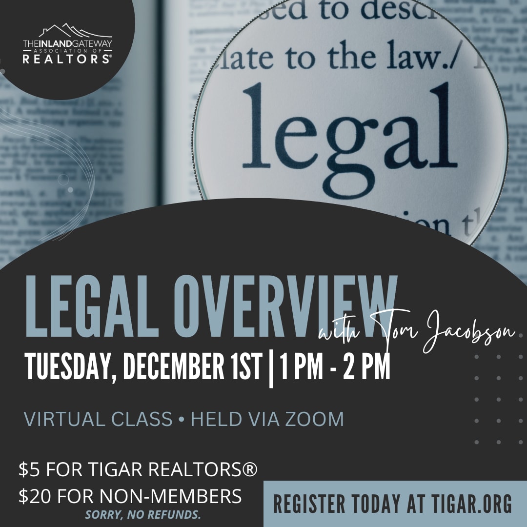 Join Legal Counsel, Tom Jacobson, for a VIRTUAL legal overview on December 1st at 1:00 PM. Don't miss out on this engaging session from the comfort of your own home! Sign up today! $5 for TIGAR members - $20 for Non Members **Sorry, no refundsImages