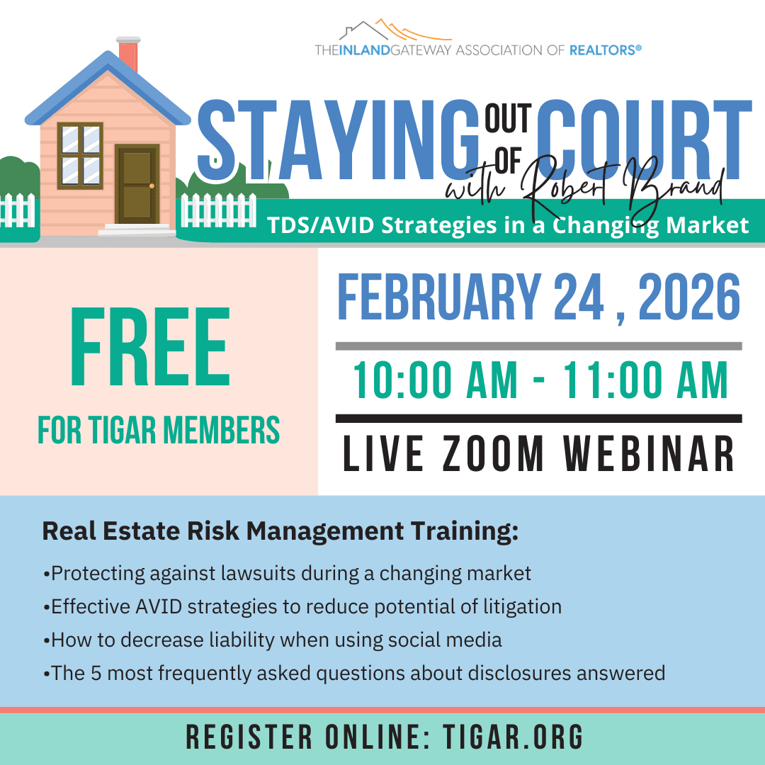 Join us for a FREE webinar to help you stay out of court! Robert Brand will teach you important risk management training to help you understand lawsuits in a changing market, effective AVID strategies to reduce potential of litigation, limit liability on social media, and answer 5 of the most asked questions about disclosures. Sign up now!Images