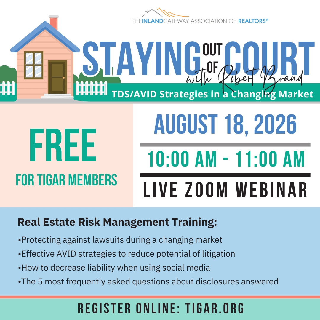 Join us for a FREE webinar to help you stay out of court! Robert Brand will teach you important risk management training to help you understand lawsuits in a changing market, effective AVID strategies to reduce potential of litigation, limit liability on social media, and answer 5 of the most asked questions about disclosures. Sign up now!Images
