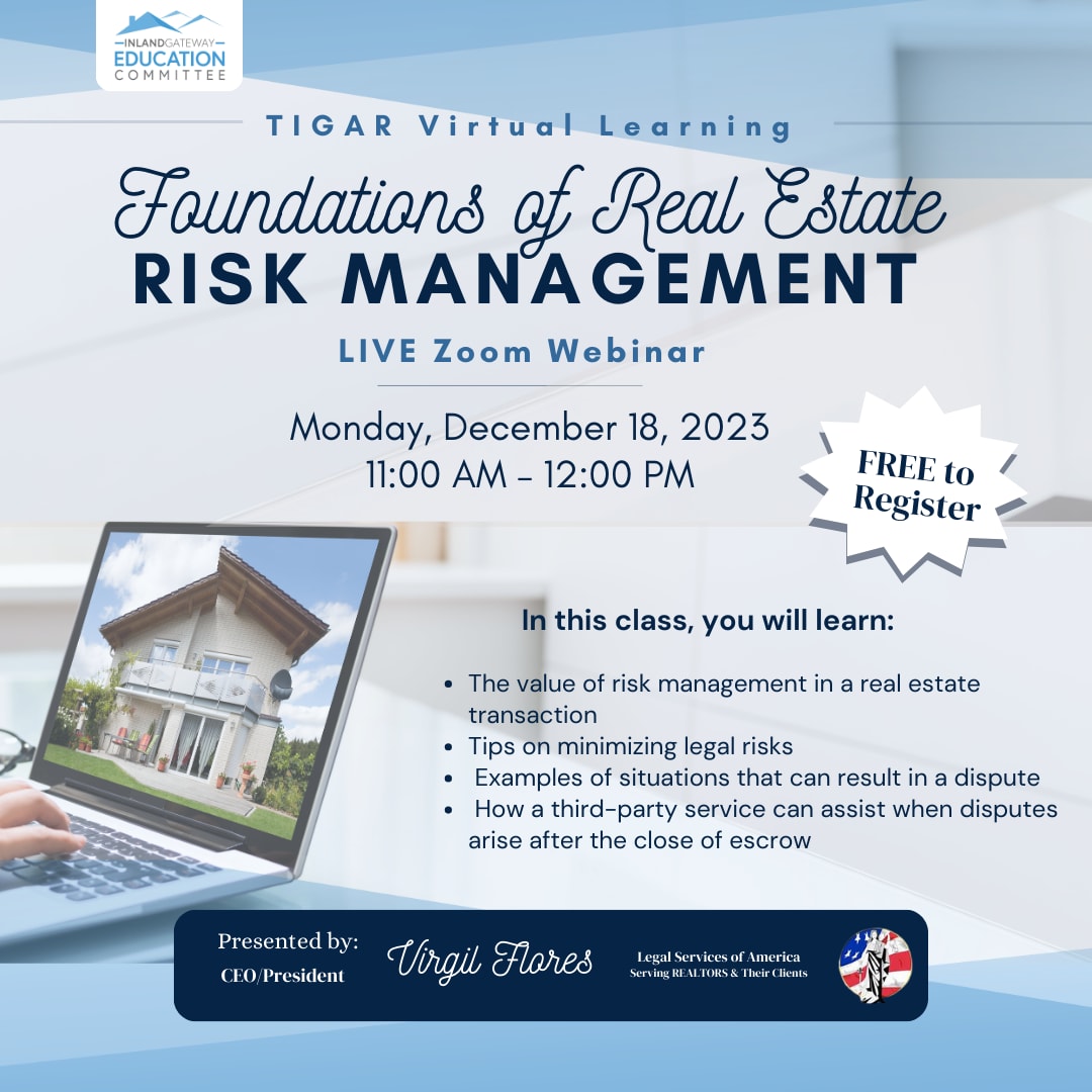 In this class you will learn: - The value of risk management in real estate transaction - Tips on minimizing legal risks - Examples of situations that can result in a dispute - How a third-party service can assist when disputes arise after the close of escrow
