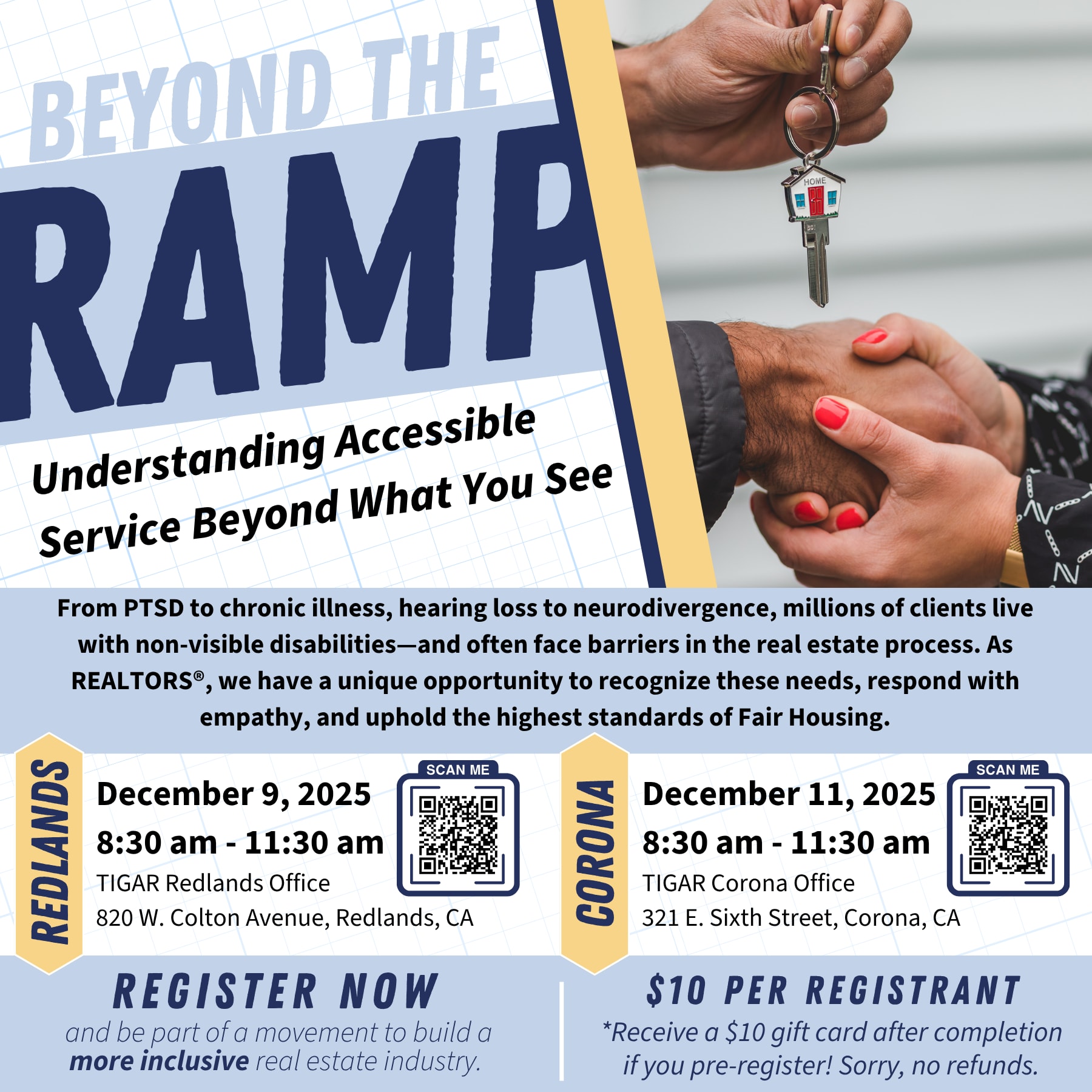While physical accessibility is often visible, many housing challenges are not. From PTSD to chronic illness, hearing loss to neurodivergence, millions of clients live with non-visible disabilities—and often face barriers in the real estate process. As REALTORS®, we have a unique opportunity to recognize these needs, respond with empathy, and uphold the highest standards of Fair Housing. This inspiring class will help you: Understand the experiences of clients with non-visible disabilities Learn practical ways to support diverse accessibility needs Explore legal protections and best practices under Fair Housing law Engage with real stories, expert guidance, and actionable takeaways REGISTER NOW and be part of a movement to build a more inclusive real estate industry.
